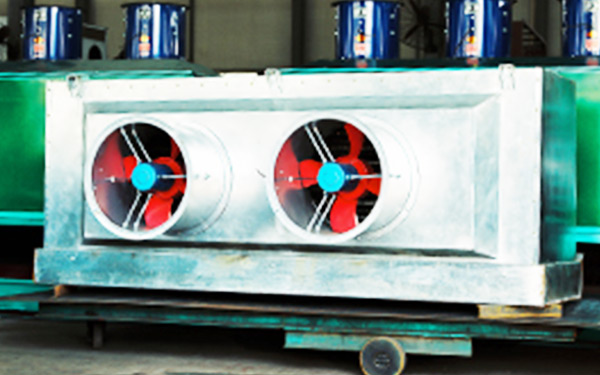 高效冷風(fēng)機(jī)是制冷系統(tǒng)中將冷量輸出的設(shè)備,主要由冷卻盤管和軸流風(fēng)機(jī)組成,通過軸流風(fēng)機(jī)的強(qiáng)制作用,將被冷卻房間的空氣通過冷風(fēng)機(jī)的冷卻排管組,進(jìn)行強(qiáng)制對流換熱,使空氣冷卻,從而達(dá)到降低室(或庫)溫的目的。
